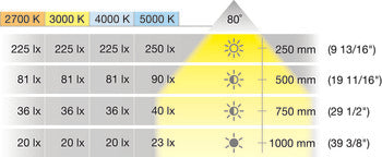 - Degree of protection: IP45 (recess mounted light); IP20 (surface mounted downlight)