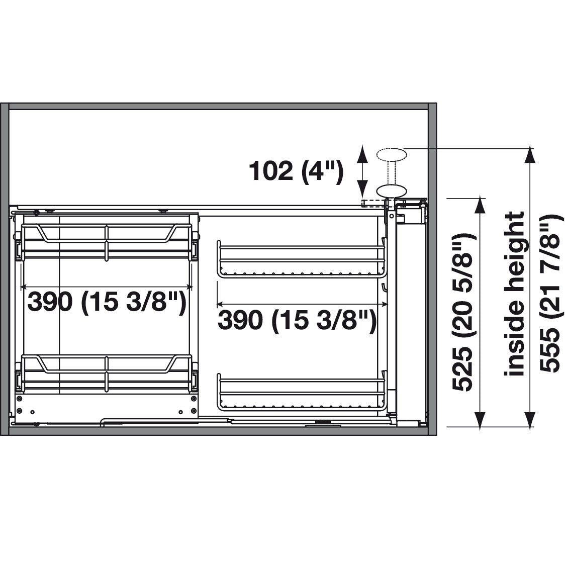 - Inside Height: 555 mm (21 7/8")