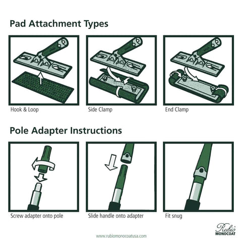 The Microfiber Bristle Pad Tool is a hinged applicator tool with hook & loop backing. Accepts the Microfiber Bristle Pad, other hook & loop pads or clamp attachment style pads. Adjustable handle accepts friction fit and threaded poles using included adapter.
