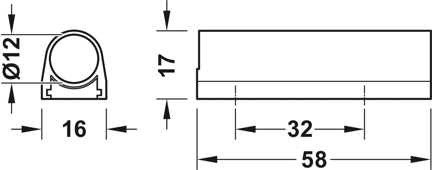- Dim. (L x W x H): 58 x 16 x 17.1 mm